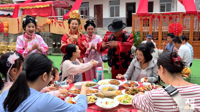 夏日来临,在星空游戏平台城老街,一场场热闹的非遗婚俗表演“娶媳妇”正在上演。游客们沉浸其中,不仅能领略抬花轿、吹唢呐、拜天地等原汁原味的传统婚嫁仪式,感受浓郁的山里风情与独特韵味;更能亲身体验非遗土菜流水席,品尝佛坪三香、粉皮腊肉、神仙豆腐等特色美食,佐以非遗古法酿造的美酒。这种将传统婚俗与非遗美食相结合的沉浸式演绎,让游客仿佛穿越时空,在舌尖美味与热闹氛围的交织中,深度体验当地传统民俗的独特魅力。