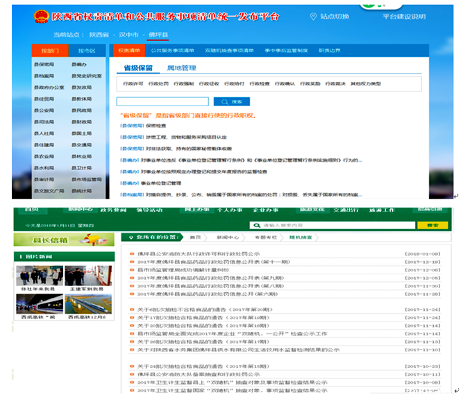 (二)以政务公开助力促改革方面:加强了权责清单和公共服务事项清单的公开和动态管理;及时公开了政策性文件情况,对“双随机、一公开”工作在“随机抽查”专栏公开了抽查结果和查处情况;对行政许可、其它权力和公共服务事项的办事指南信息进行发布公开;做好了西洽会、佛坪节庆等重大信息的公开发布工作;公开了地方债务信息,深入推进预决算公开,在政府网站设立财政信息专栏公开政府预决算、部门预决算信息。