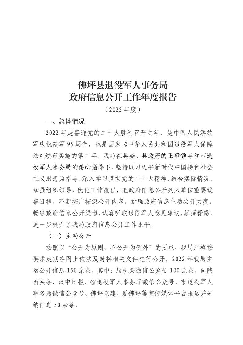 星空游戏平台退役军人事务局信息公开工作年度报告(2022年度)