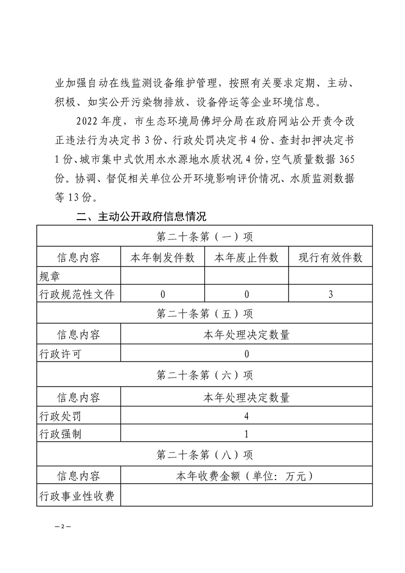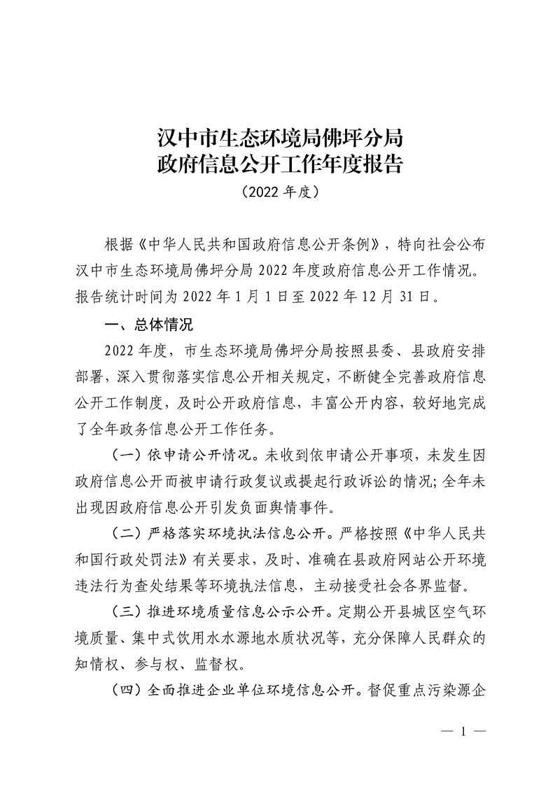 汉中市生态环境局佛坪分局信息公开工作年度报告(2022年度)