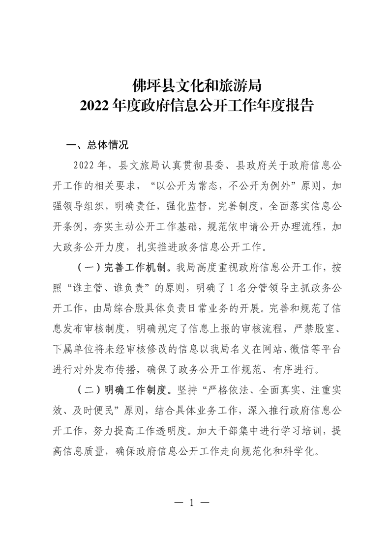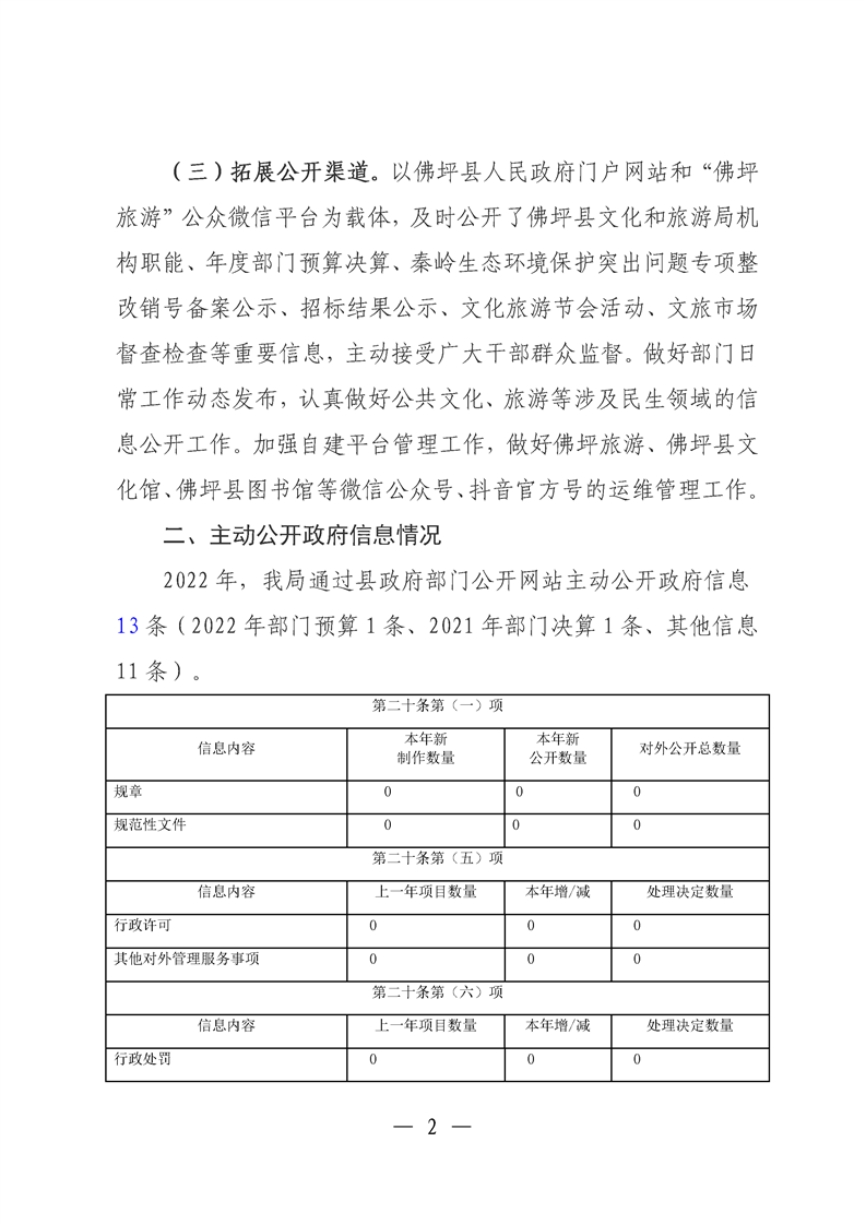 星空游戏平台文化和旅游局信息公开工作年度报告(2022年度)
