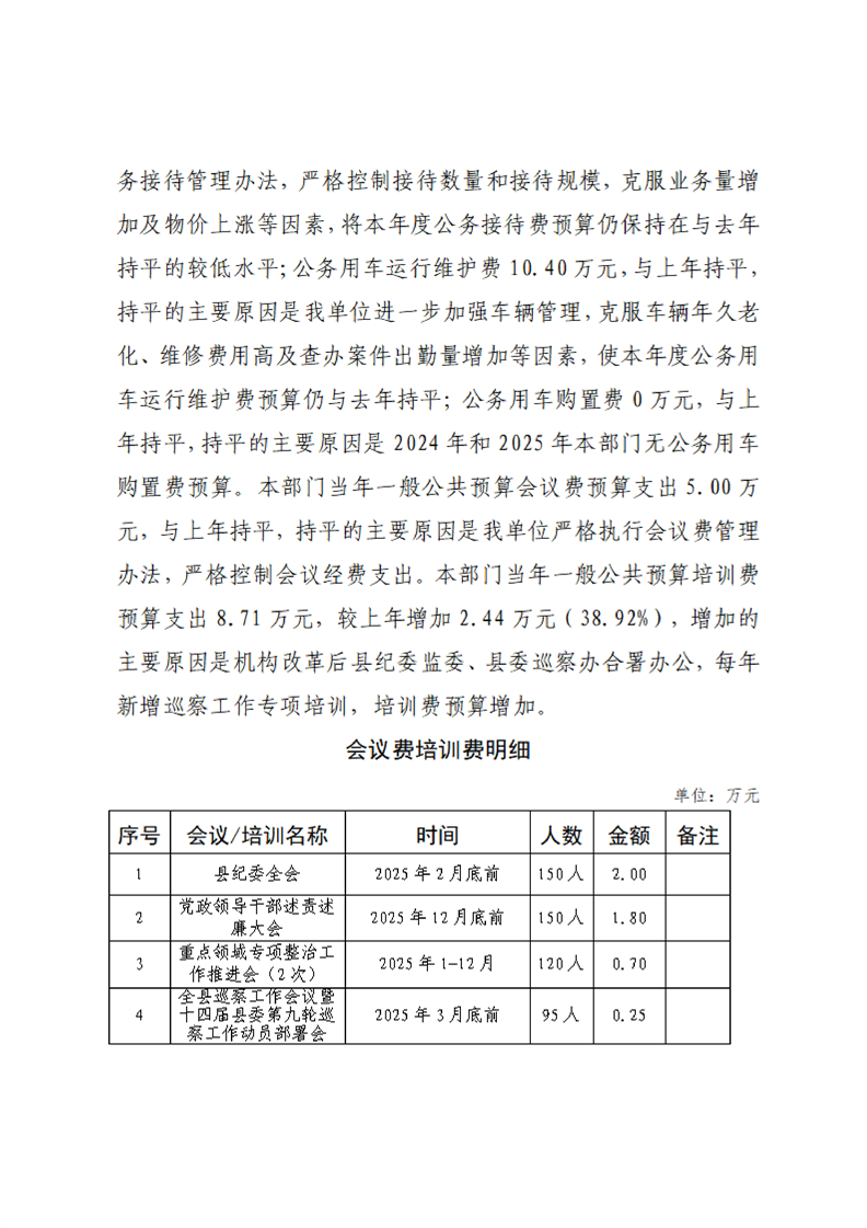 中共星空游戏平台纪律检查委员会(县监察委员会)2025年预算公开说明