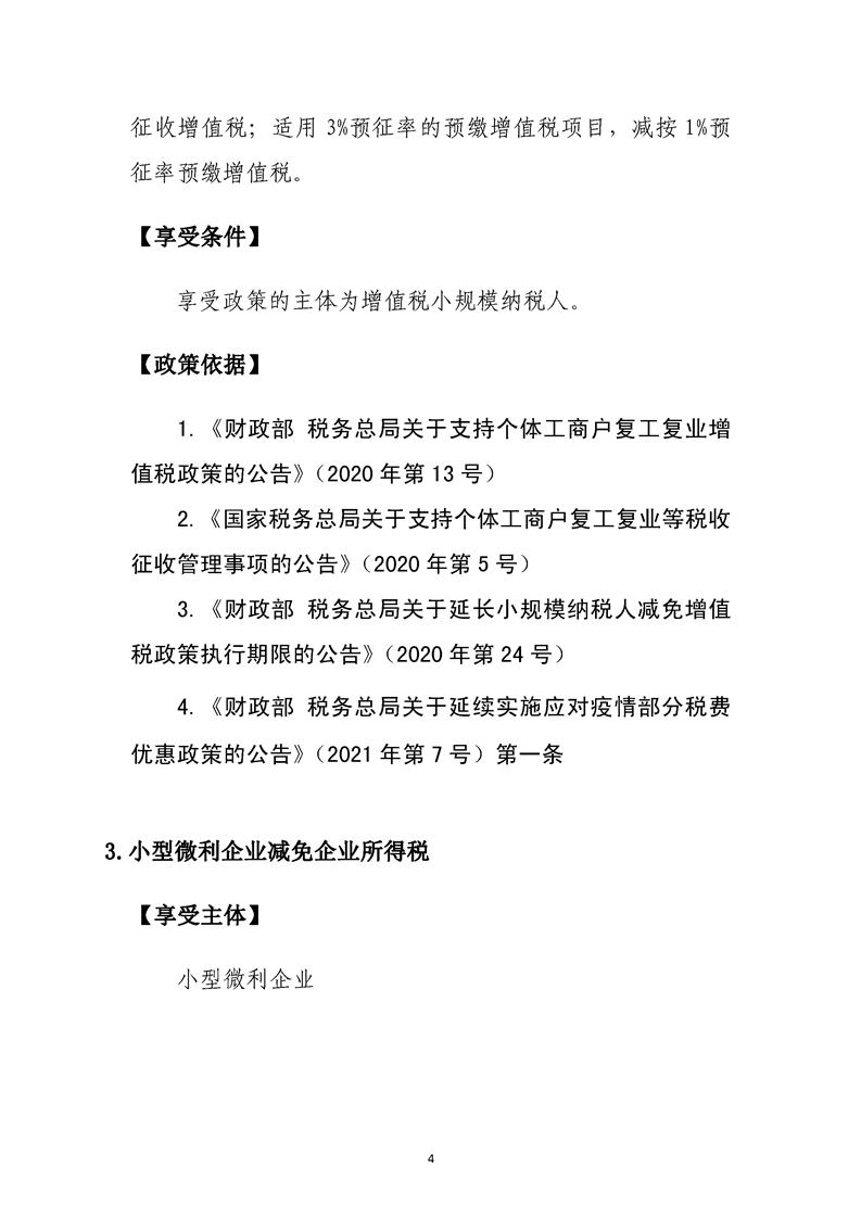 小微企业个体工商户税费优惠政策