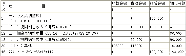 A105010《视同销售和房地产开发企业特定业务纳税调整明细表》