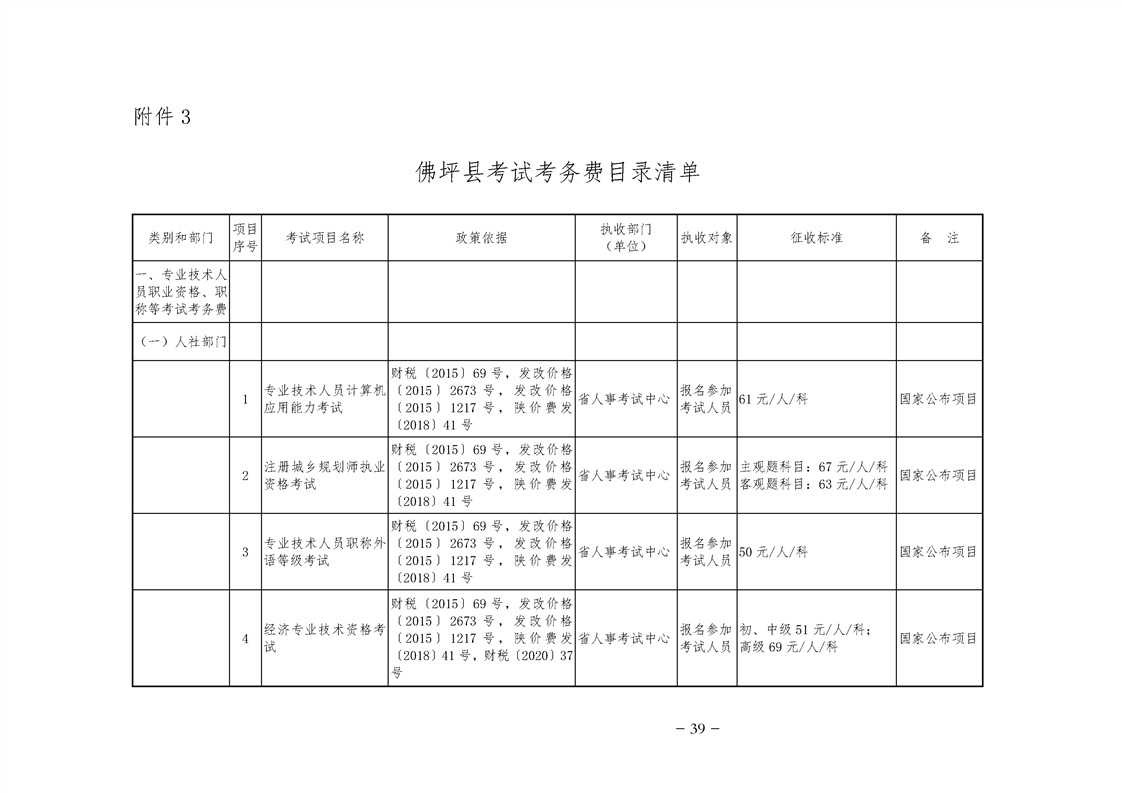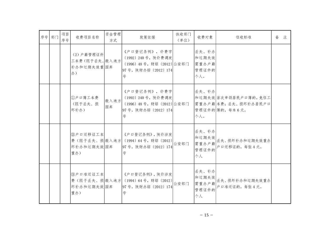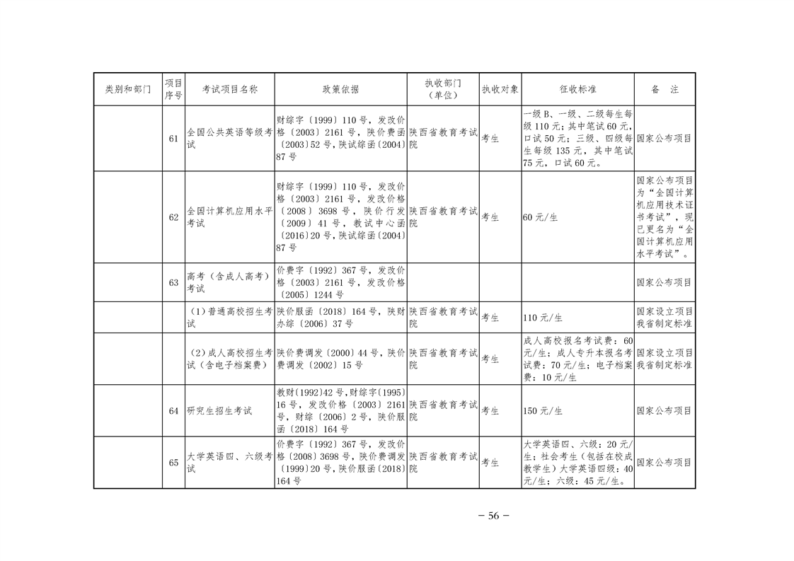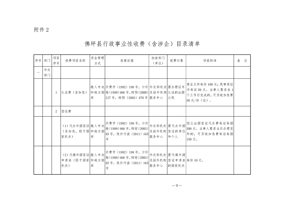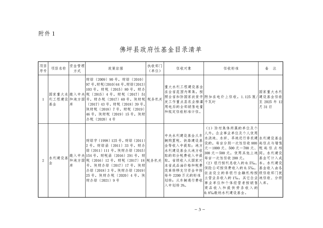 关于公布全县行政事业性收费和政府性基金目录清单的通知