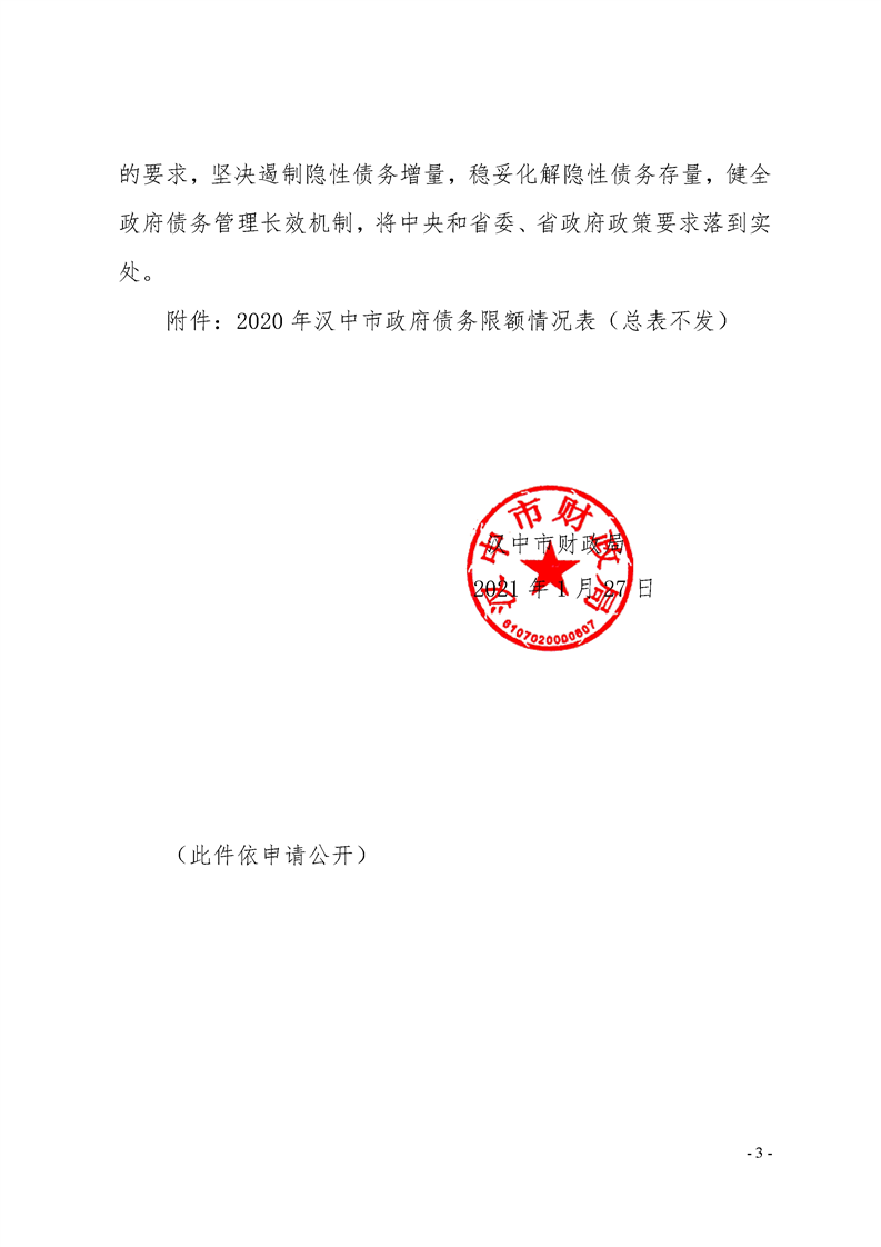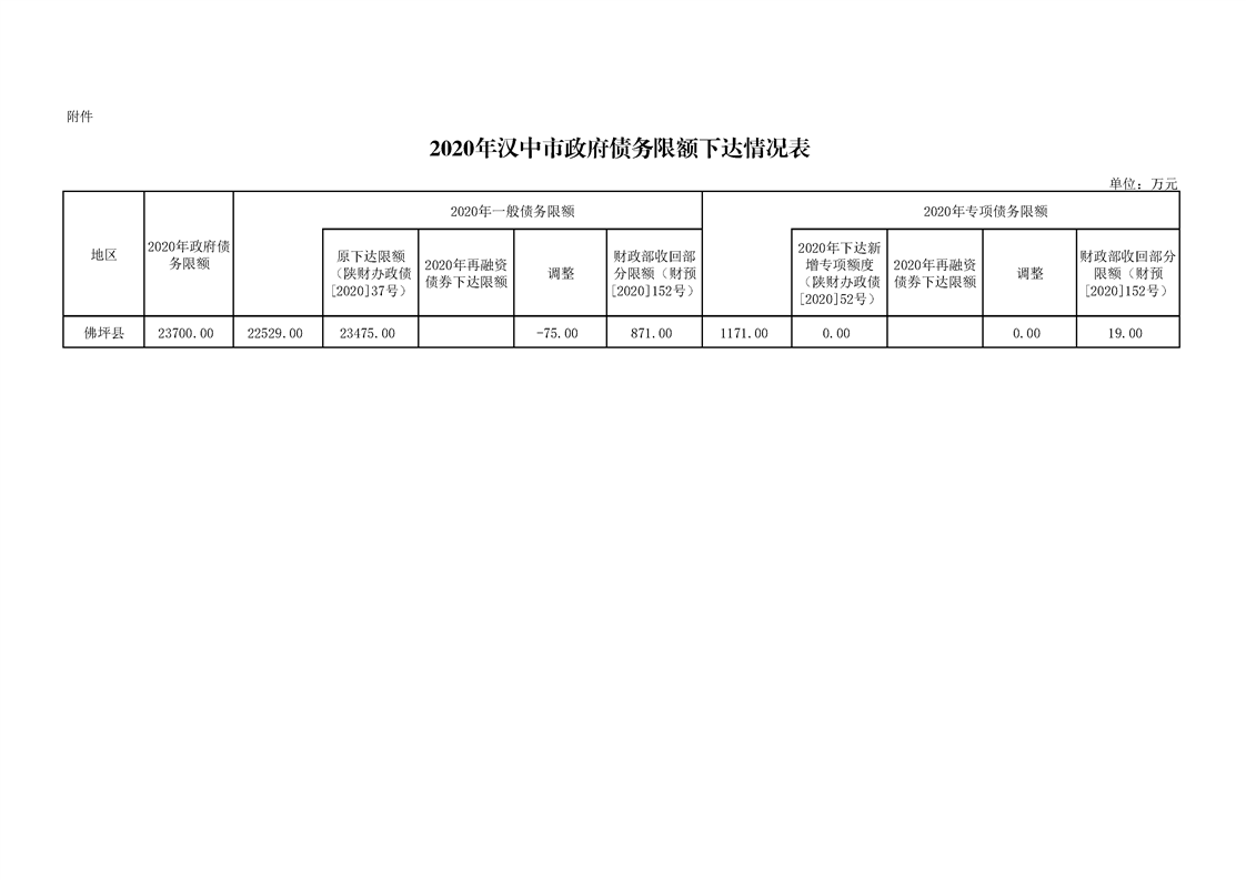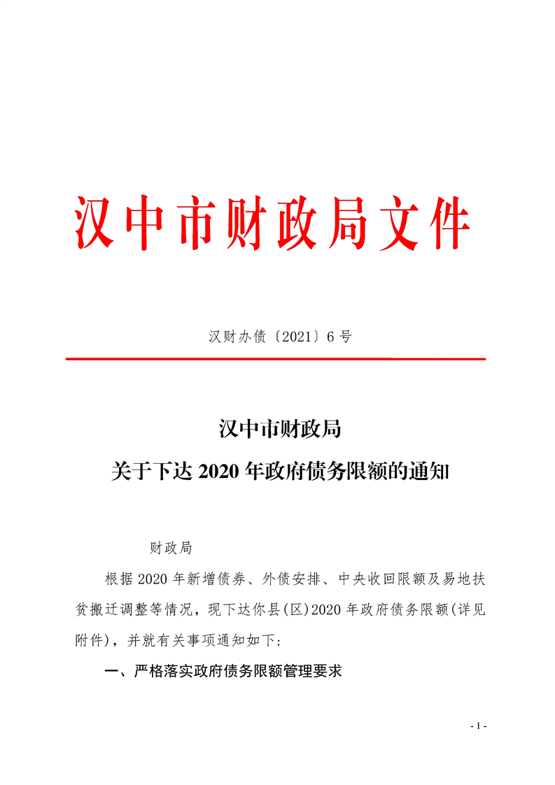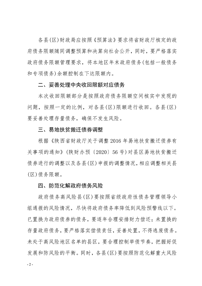 关于下达2020年政府债务限额的通知