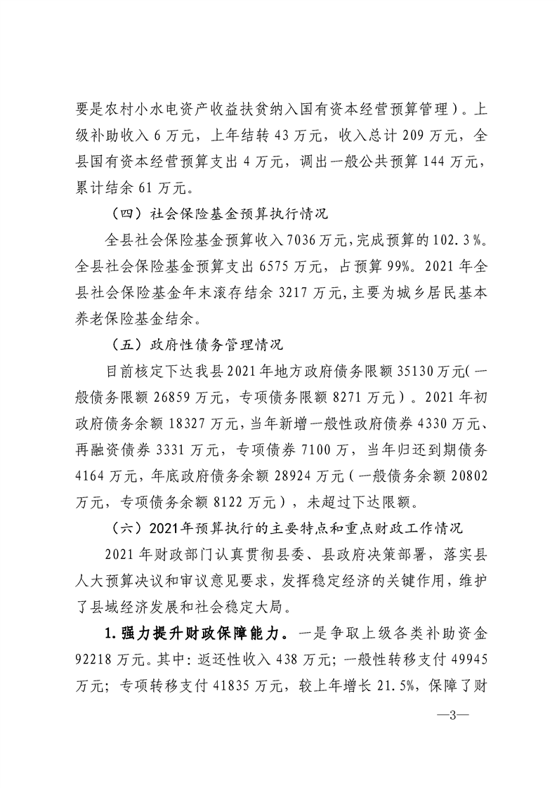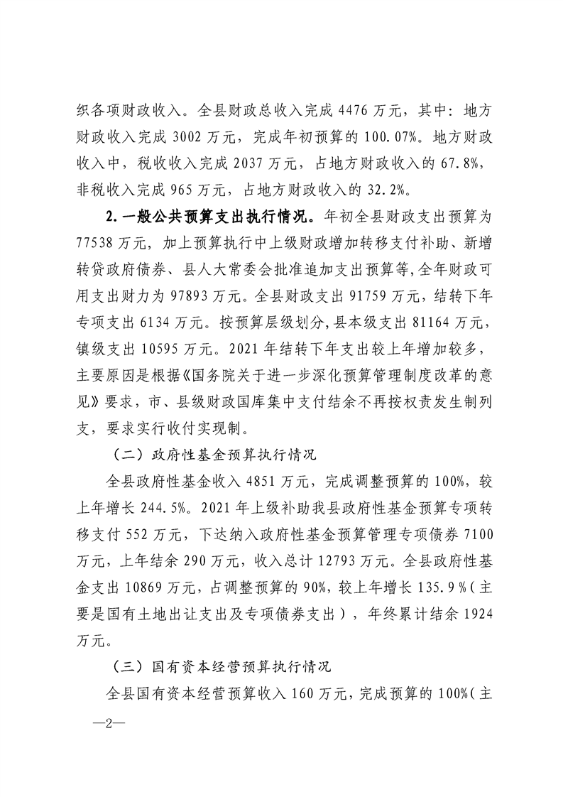 关于星空游戏平台2021年财政预算执行情况和2022年财政预算草案的报告