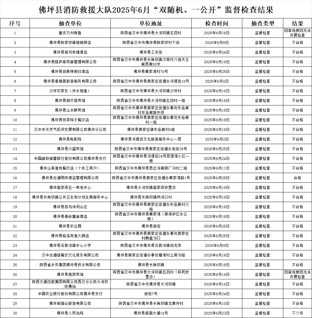 星空游戏平台消防救援大队2025年6月“双随机、一公开”监督检查结果