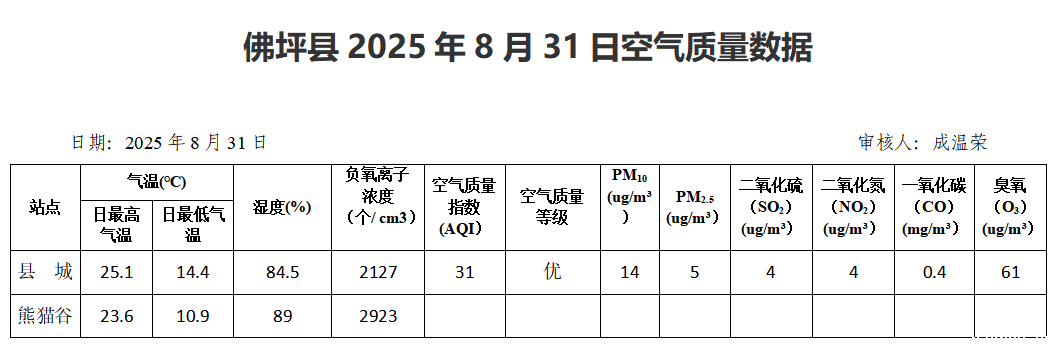 星空游戏平台2025年8月31日空气质量数据