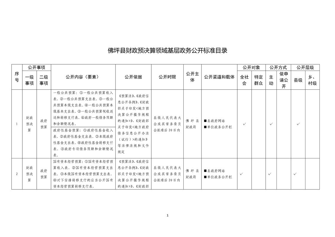 星空游戏平台财政预决算领域基层政务公开标准目录