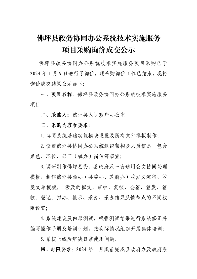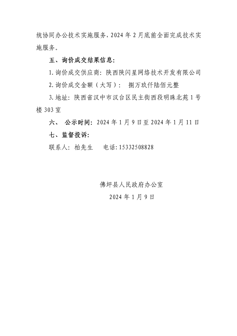 星空游戏平台政务协同办公系统技术实施服务项目采购询价成交公示