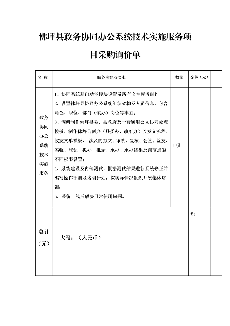 星空游戏平台政务协同办公系统技术实施服务项目采购询价单