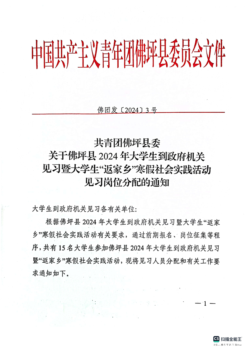 关于星空游戏平台2024年大学生到政府机关见习暨“返家乡”寒假社会实践活动见习岗位分配的通知