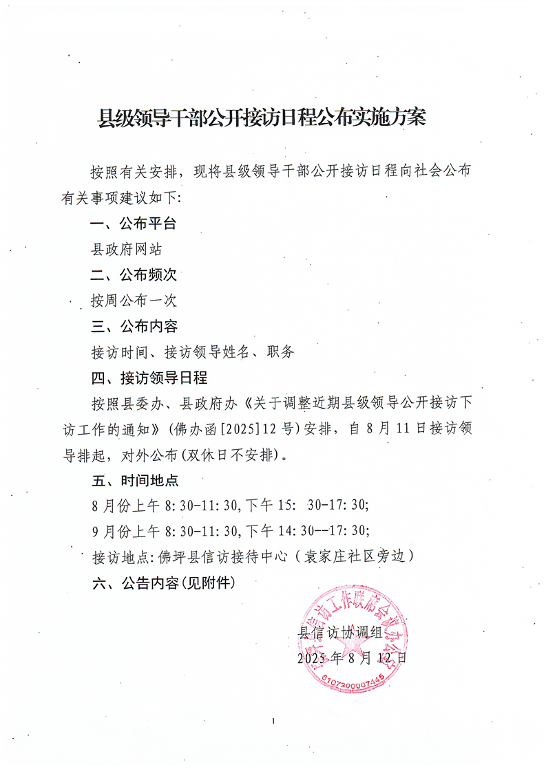 县级领导干部公开接访日程公布实施方案(9月15日-9月19日)