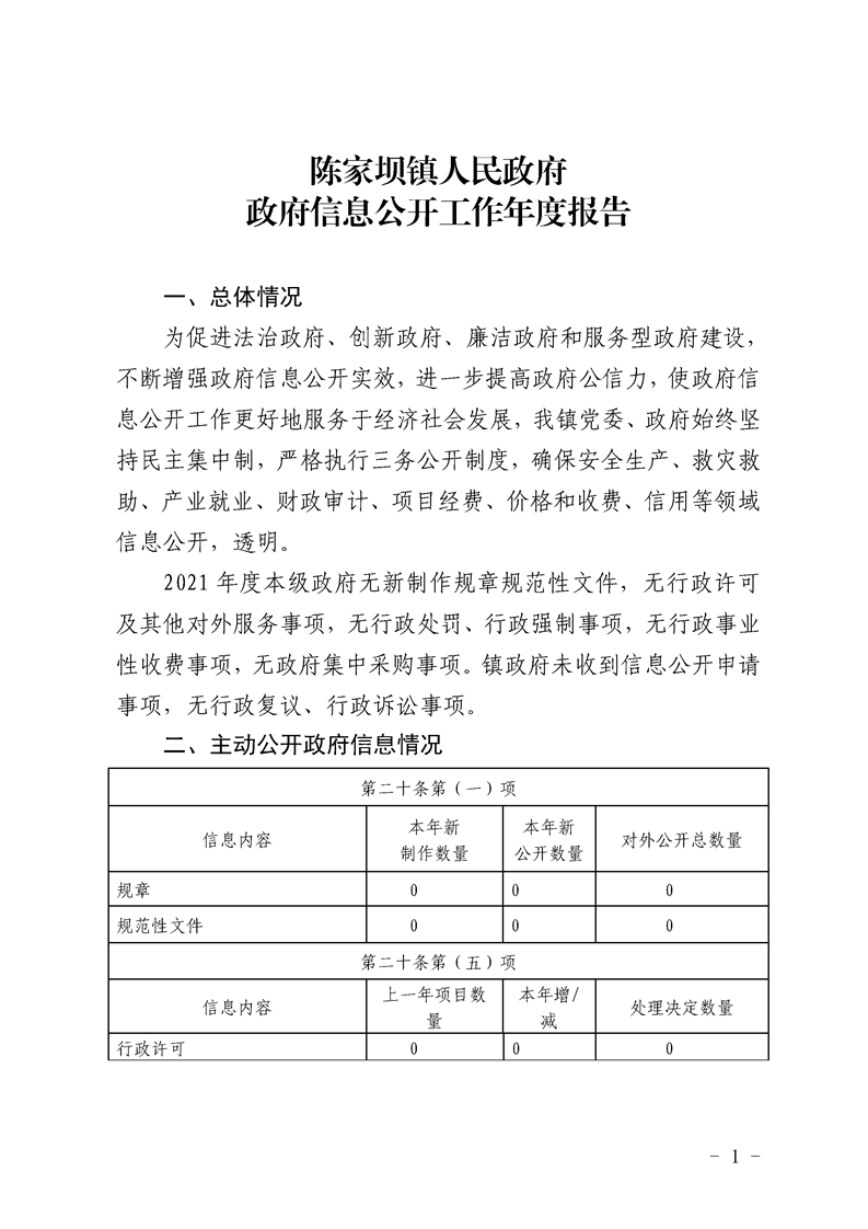 陈家坝镇人民政府2021年度星空体育app下载方式工作报告