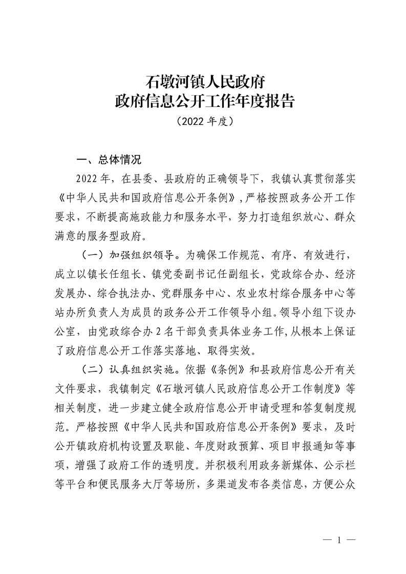 石墩河镇人民星空体育app下载方式工作年度报告(2022年度)